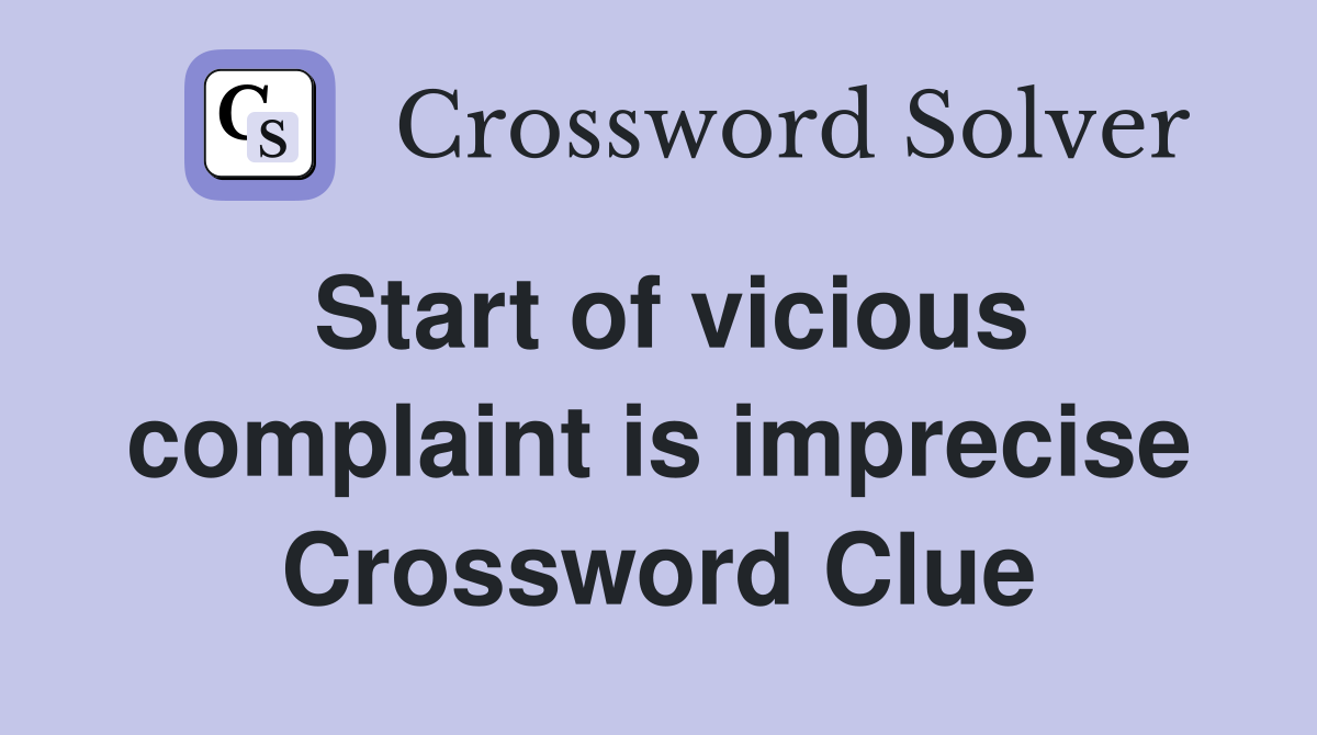 Start of vicious complaint is imprecise Crossword Clue Answers