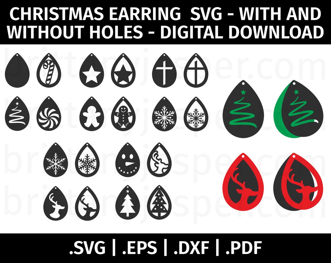Christmas Earring SVG Bundle Christmas Earring Template SVG Free