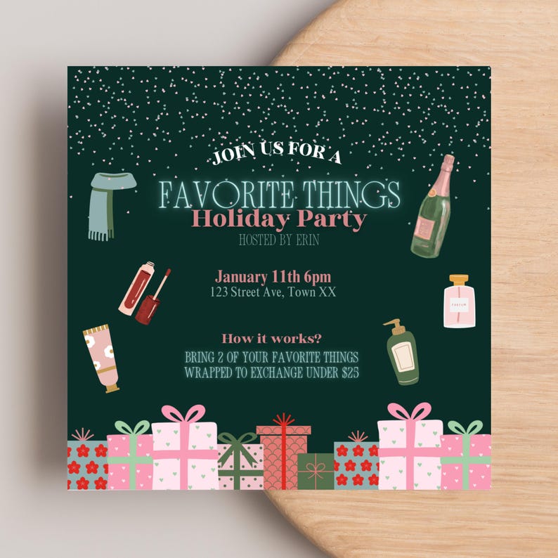 Favorite Things Party Invitation Template Holiday Girl s Night Instant