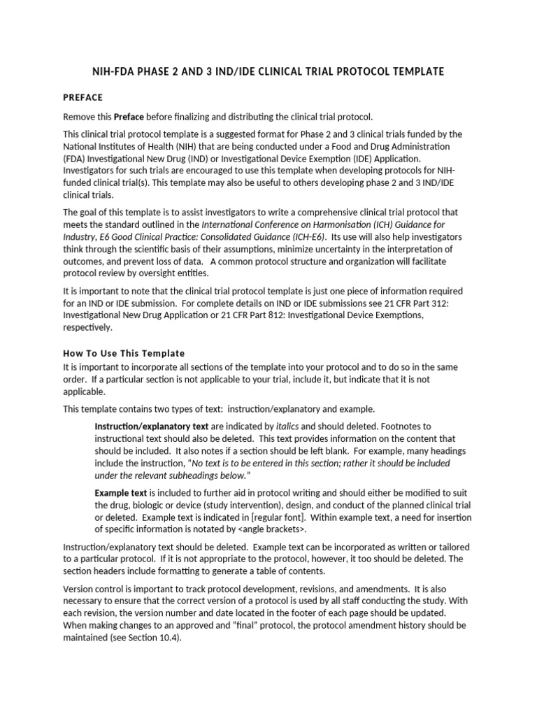 NIH FDA Phase 2 and 3 IND/IDE Clinical Trial Protocol Template PREFACE