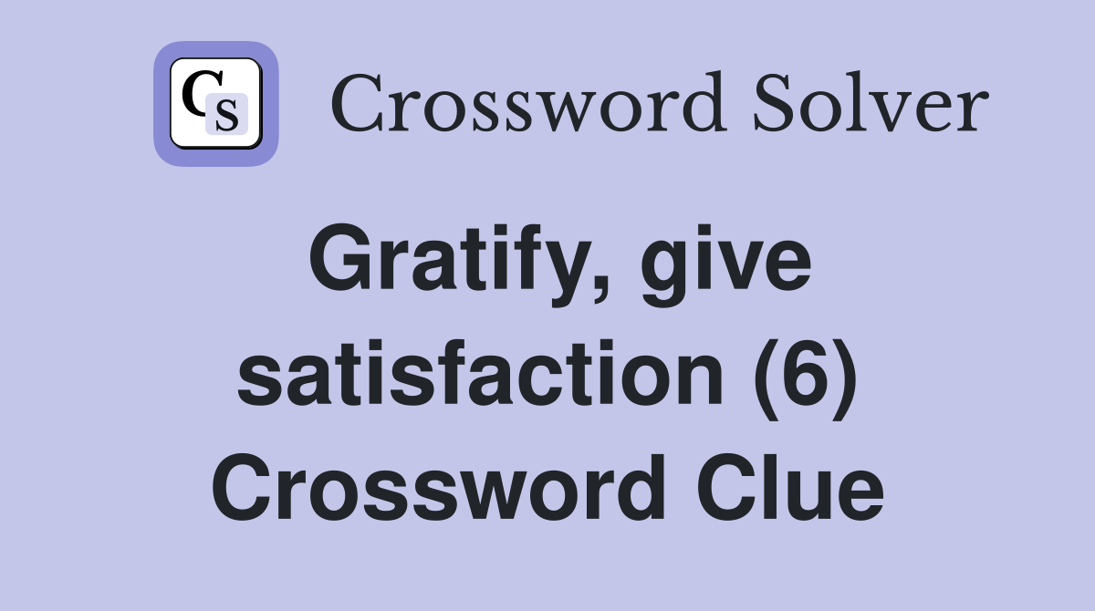 Gratify give satisfaction (6) Crossword Clue Answers Crossword Solver
