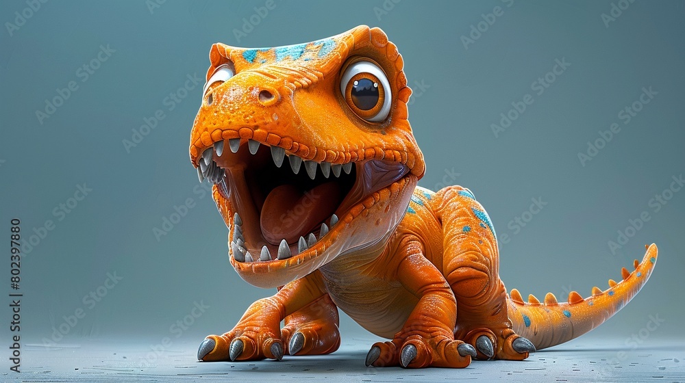 A fearsome dinosaur cartoon character with sharp claws and a powerful
