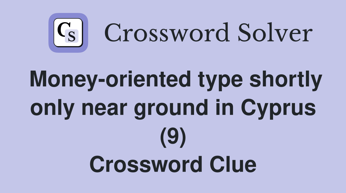 Money oriented type shortly only near ground in Cyprus (9) Crossword
