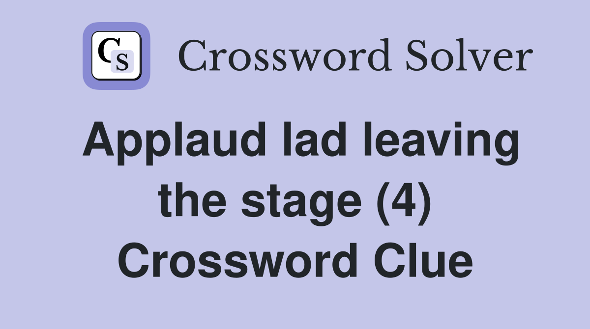 Applaud lad leaving the stage (4) Crossword Clue Answers Crossword
