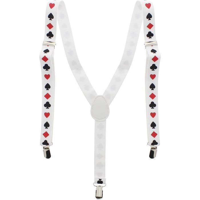Symboles de jeu de cartes imprimées bretelles blanc Taille unique
