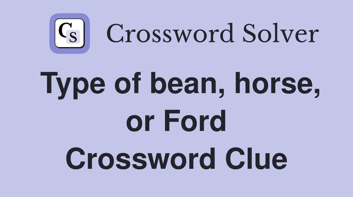 Type of bean horse or Ford Crossword Clue Answers Crossword Solver