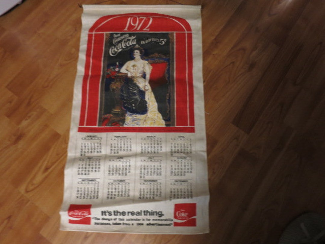 Vintage 1972 Coca Cola Linen Calendar Drink Carbonated Coca Cola in