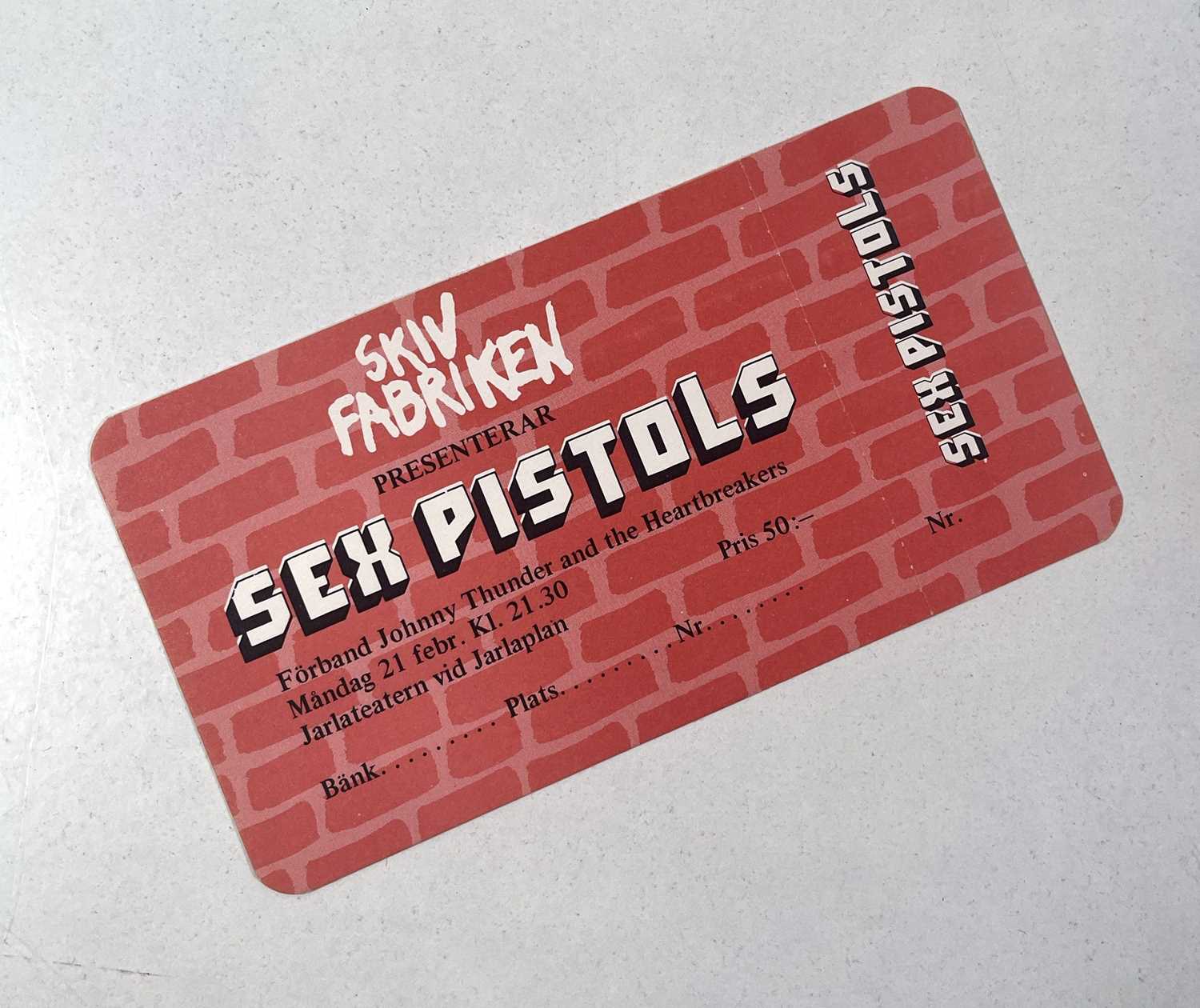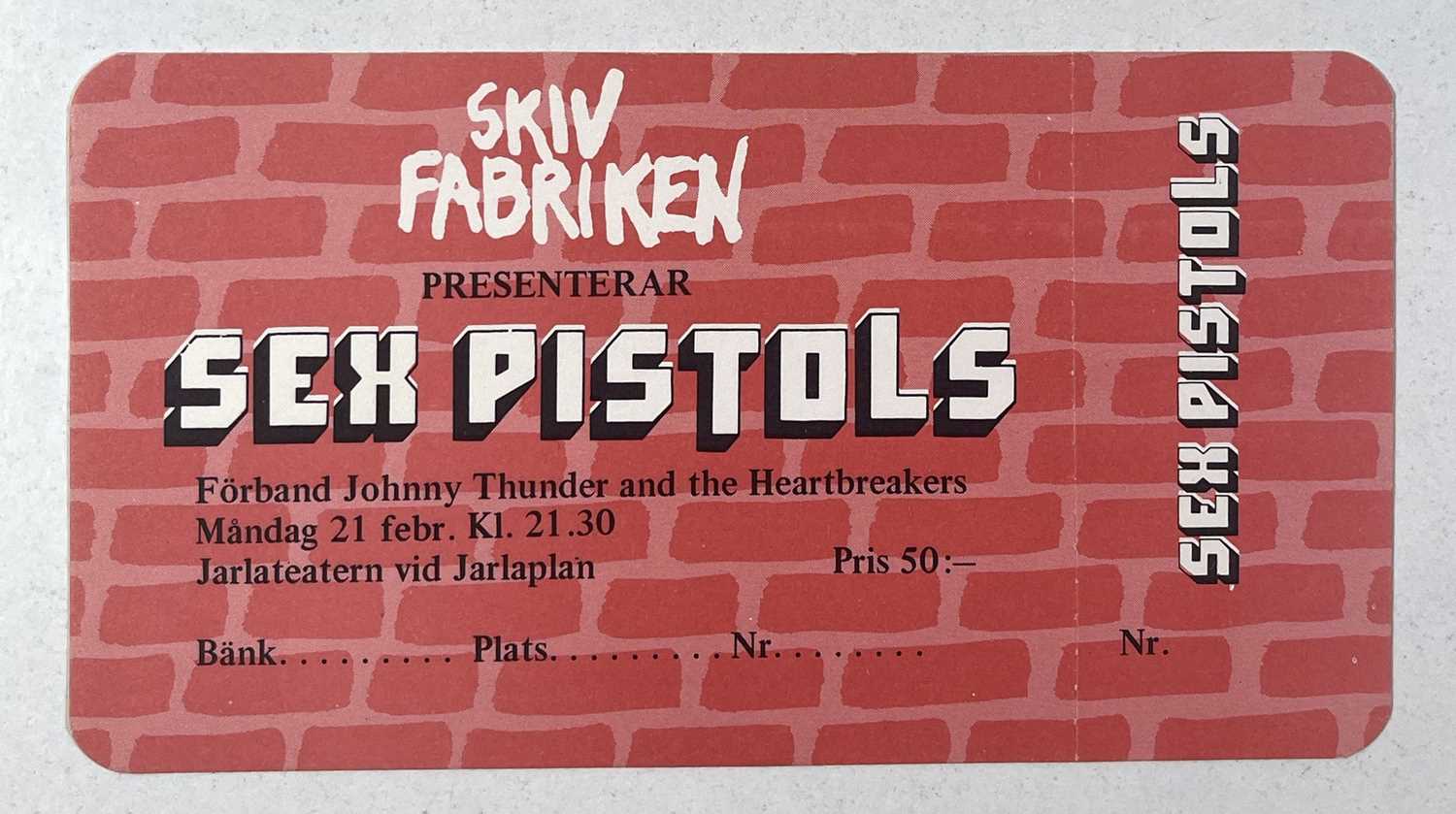Lot 109 THEPISTOLS TICKET FOR THE CANCELLED
