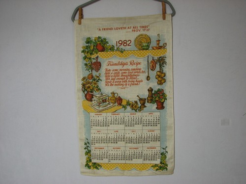 Vintage 1982 Friendship #39 s Recipe Linen Calendar Tea Towel eBay