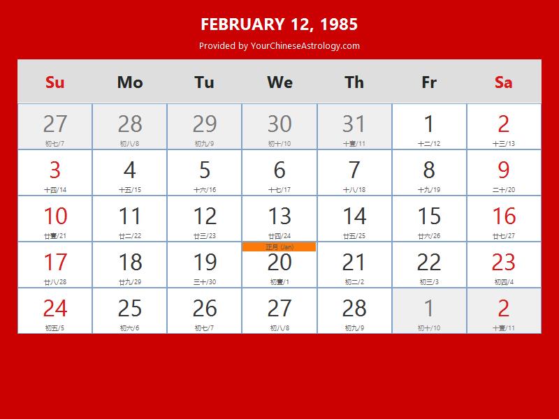 Chinese Calendar Feb 12 1985: Auspicious Things to Do and Hours Bazi
