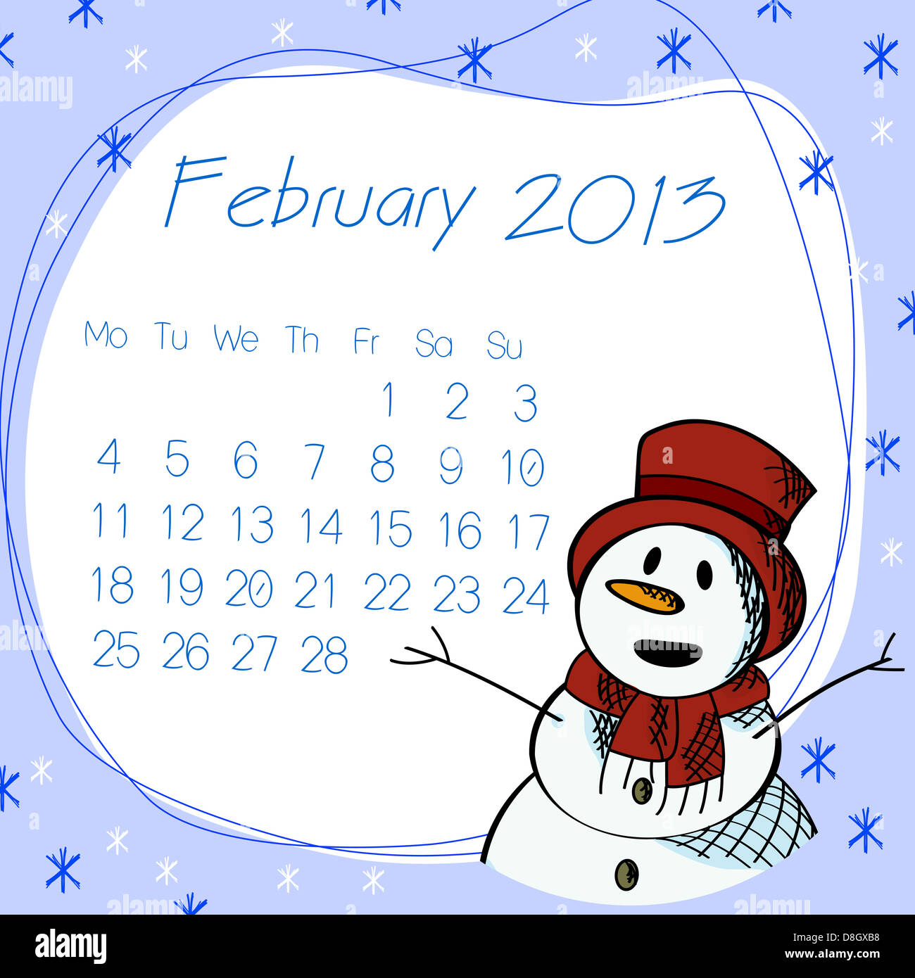 February 2013 snow man calendar Stock Photo Alamy