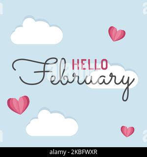Composition of hello february text over shapes and hearts Stock Photo