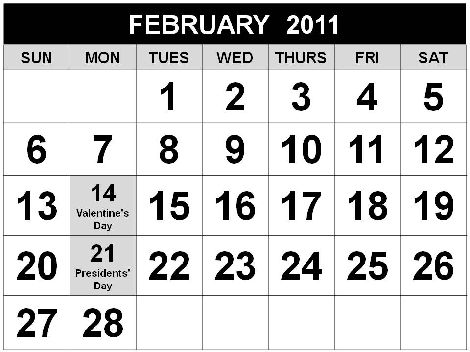 Calendar February 2011 Printable Old Calendars