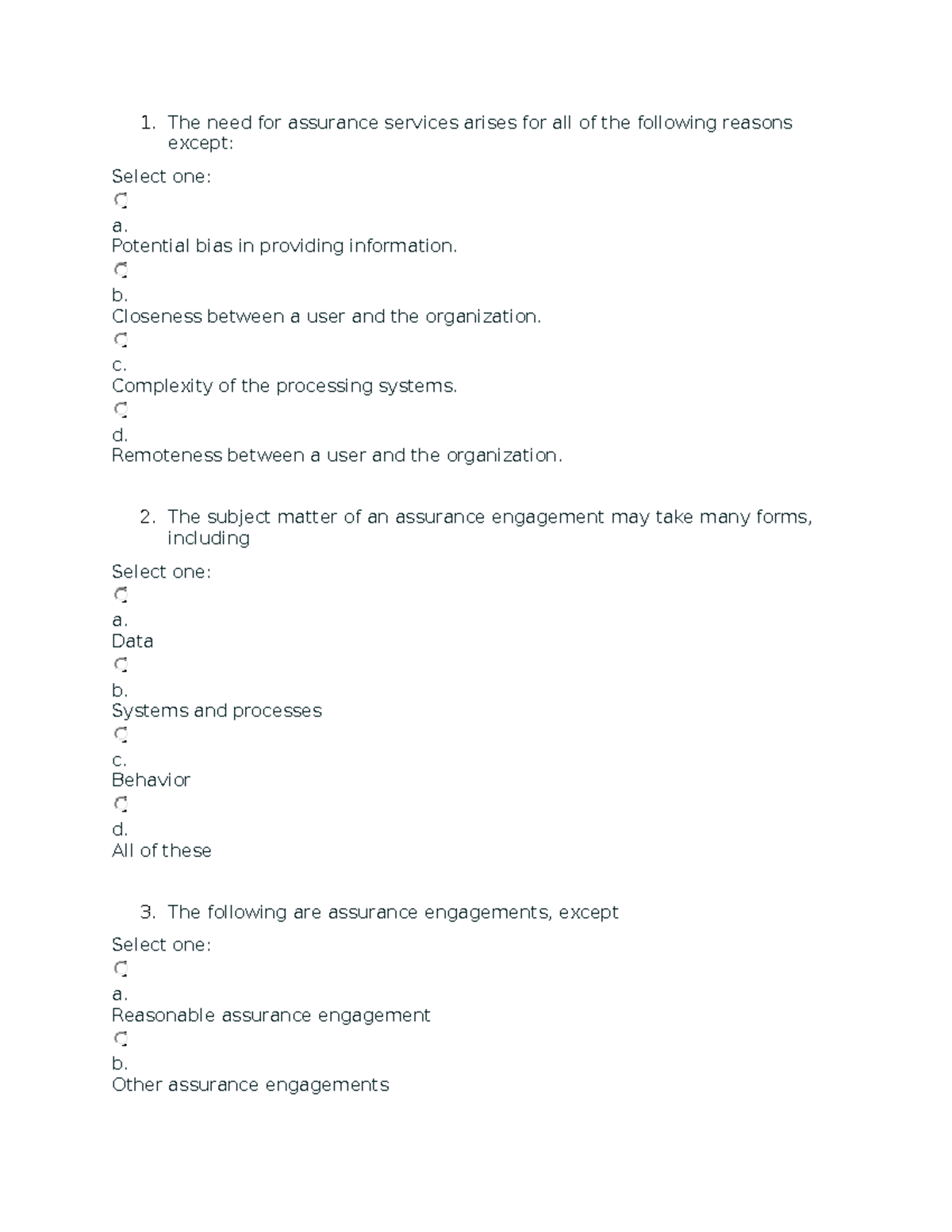 Midterm Exam Review: Auditing Assurance Principles (Course Code) Studocu