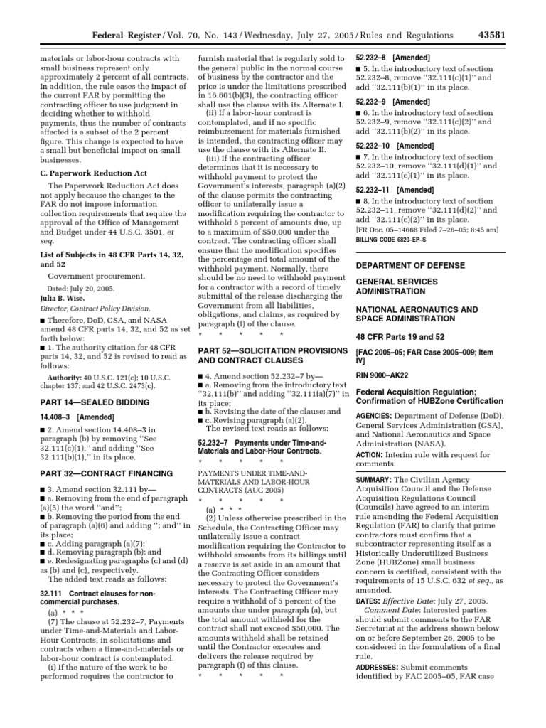 Rule: Federal Acquisition Regulation (FAR) : HUBZone Certification