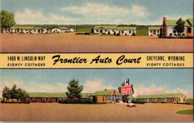 Frontier Auto Court Cheyenne Wyoming WY 80 Cottages Linen Postcard