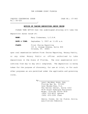 Notice of deposition federal court sample: Fill out sign online DocHub