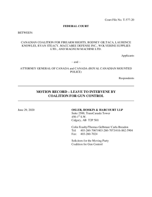 Fillable Online FORM 359 FEDERAL COURT BETWEEN: CANADIAN Firearm