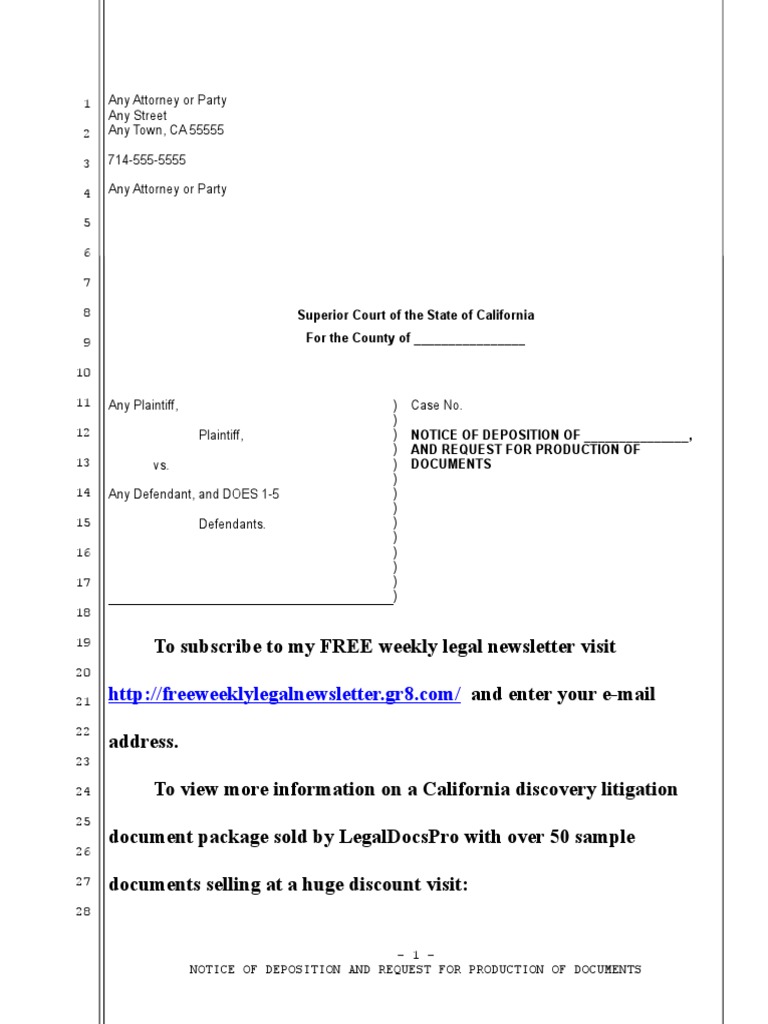 Sample Deposition Notice For Individual in California PDF