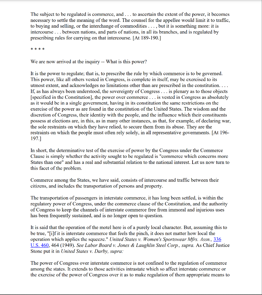 Solved Case Briefing: The Commerce Clause of the Chegg com