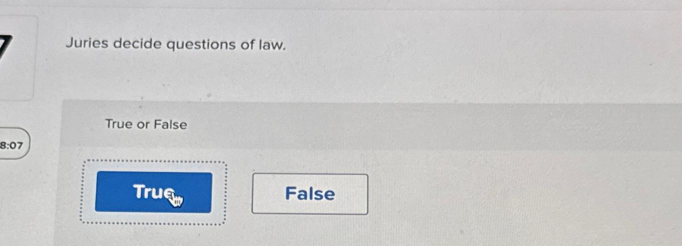 Solved Juries decide questions of law True or FalseTruâi Chegg com