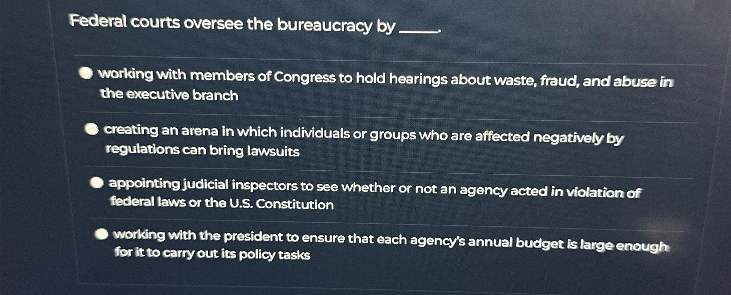 Solved Federal courts oversee the bureaucracy by q working Chegg com