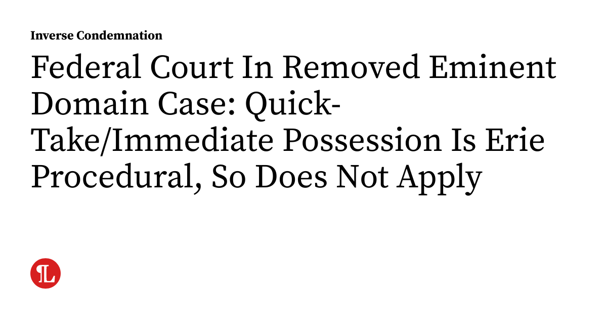 Federal Court In Removed Eminent Domain Case: Quick Take/Immediate