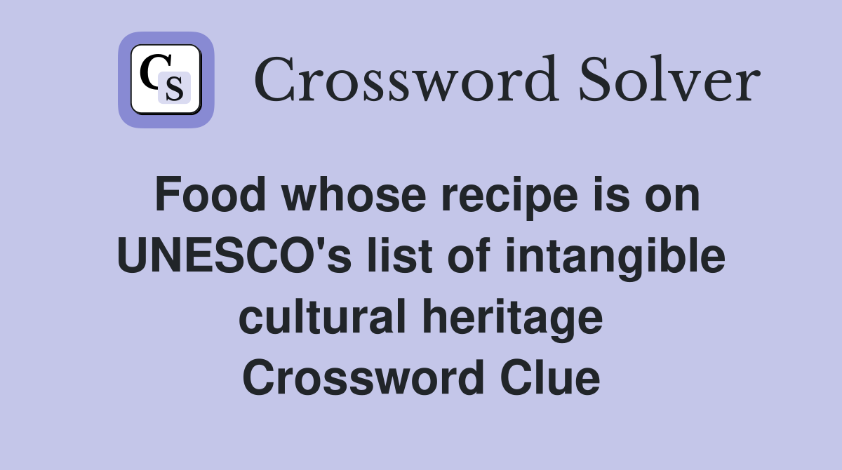 Food whose recipe is on UNESCO #39 s list of intangible cultural heritage
