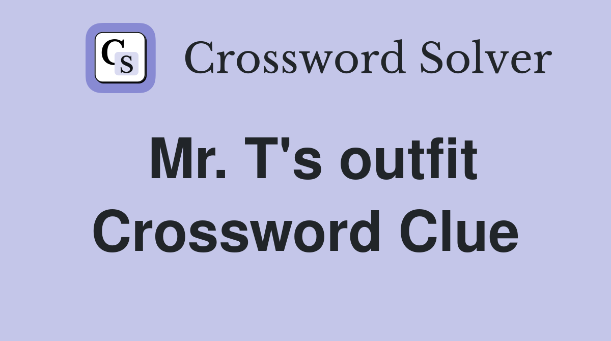 Mr T #39 s outfit Crossword Clue Answers Crossword Solver