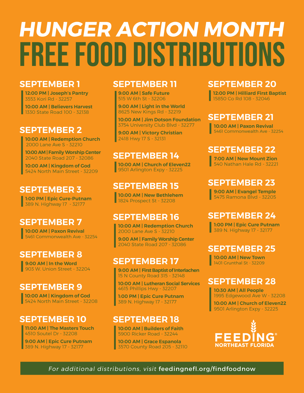 Feeding Northeast Florida is hosting 30 plus free food distributions