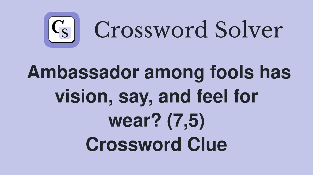 Ambassador among fools has vision say and feel for wear? (7 5