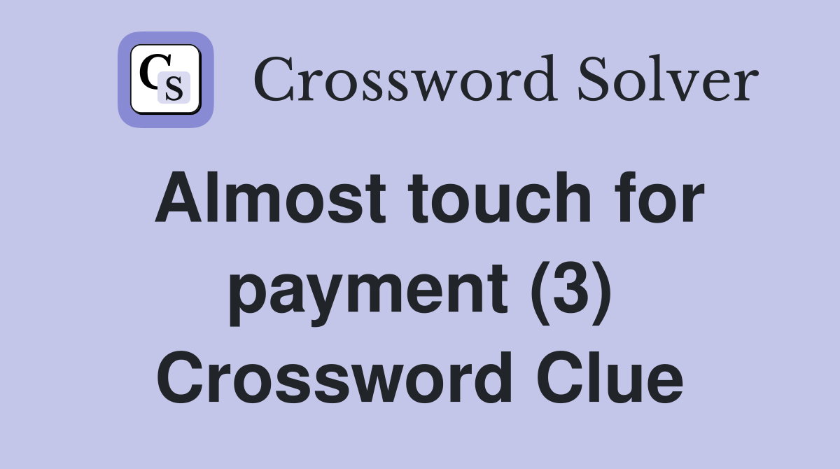 Almost touch for payment (3) Crossword Clue Answers Crossword Solver