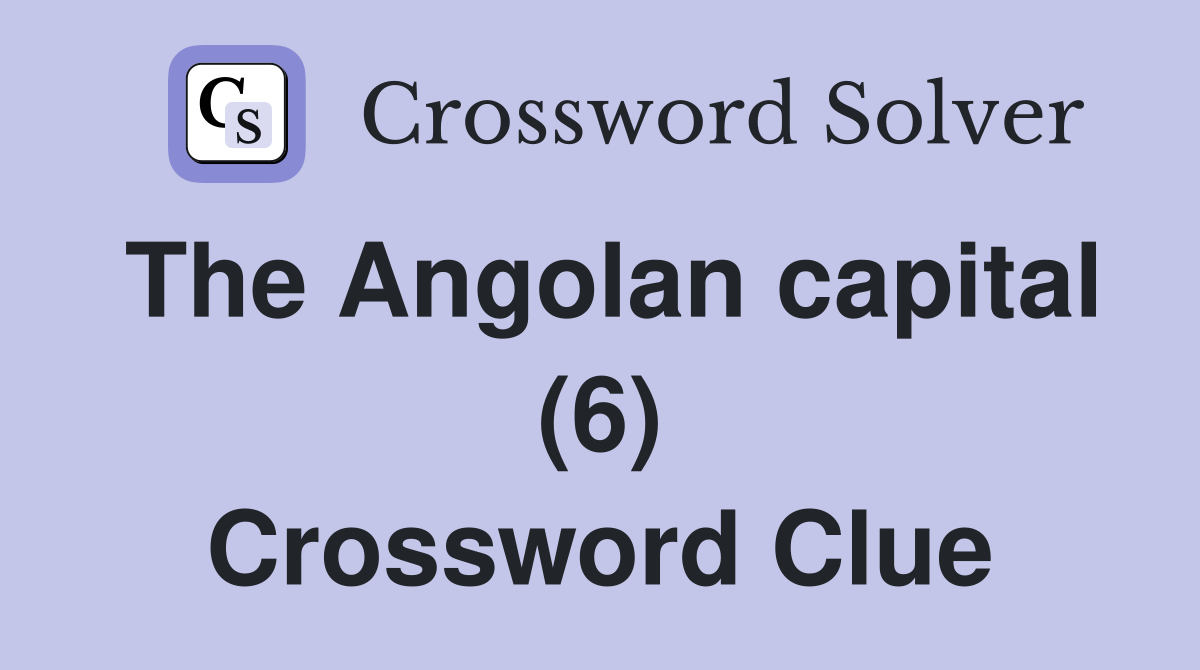 The Angolan capital (6) Crossword Clue Answers Crossword Solver