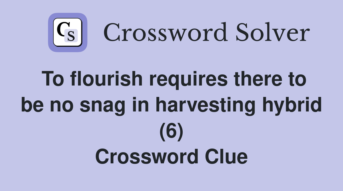 To flourish requires there to be no snag in harvesting hybrid (6
