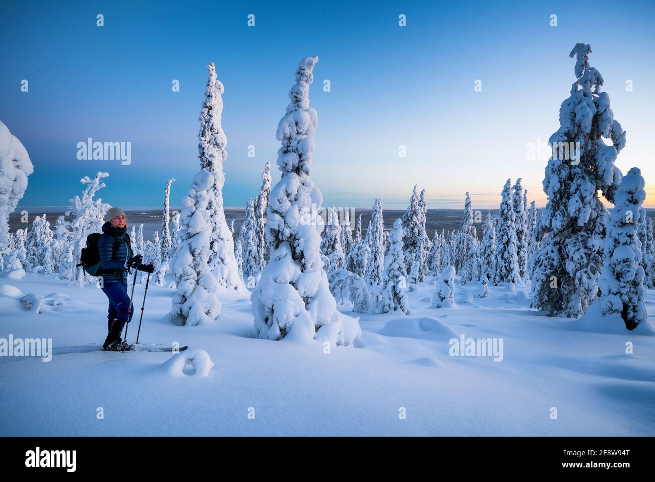 Skiing at Aakeustunturi fell in Pallas Yllästunturi National Park