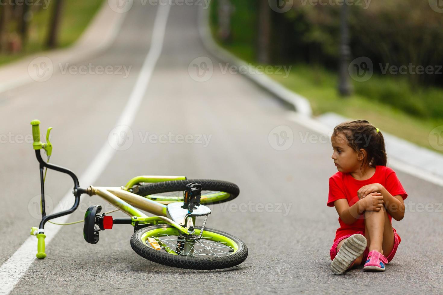 The little girl fell off the bike on the road 20888666 Stock Photo at