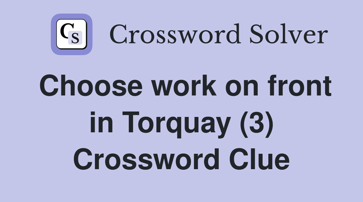 Choose work on front in Torquay (3) Crossword Clue Answers