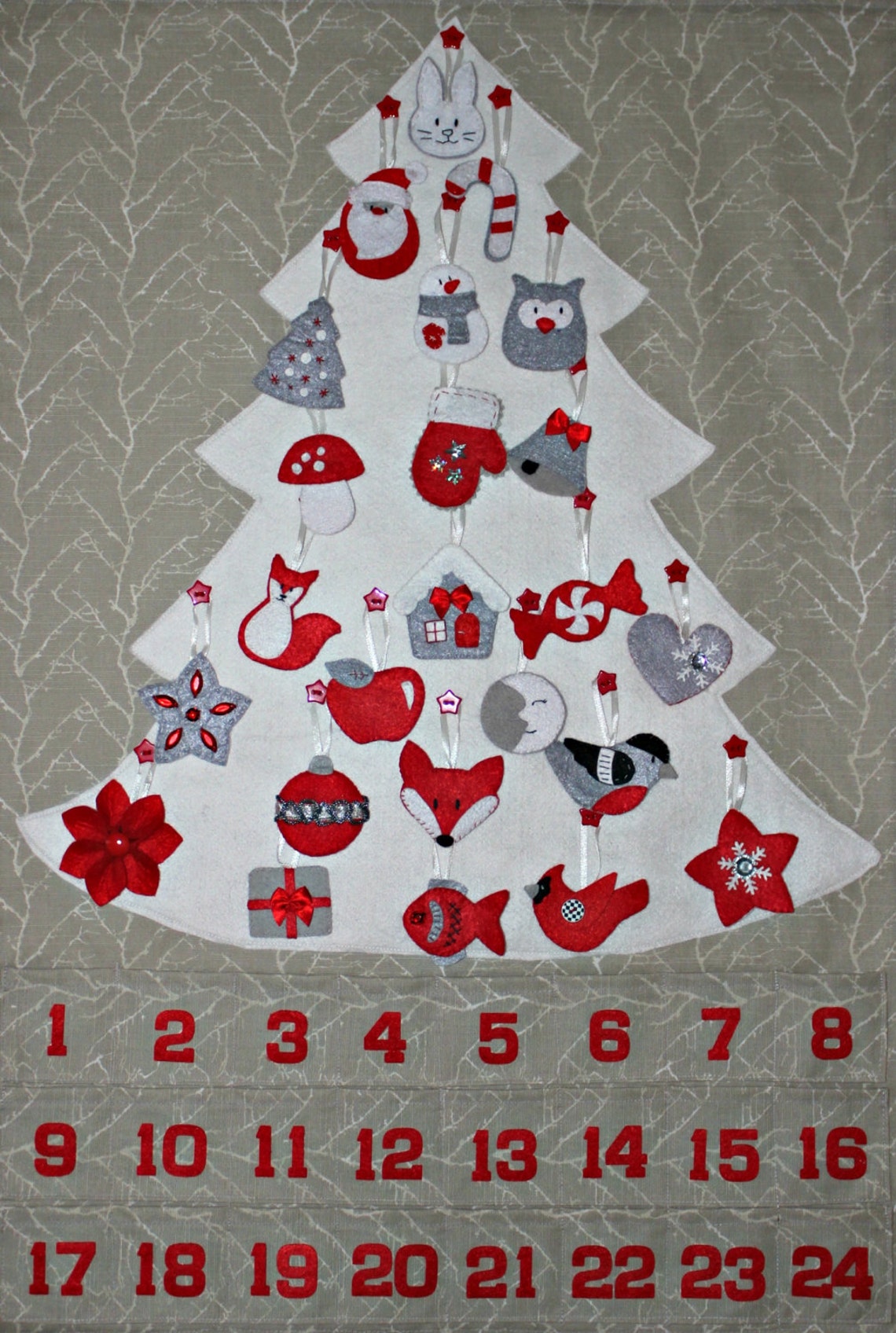 Felt Advent Calendar With 24 Ornaments Red White Grey Etsy