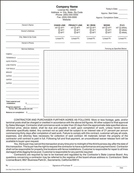 Free Fence Contract Template Free Printable