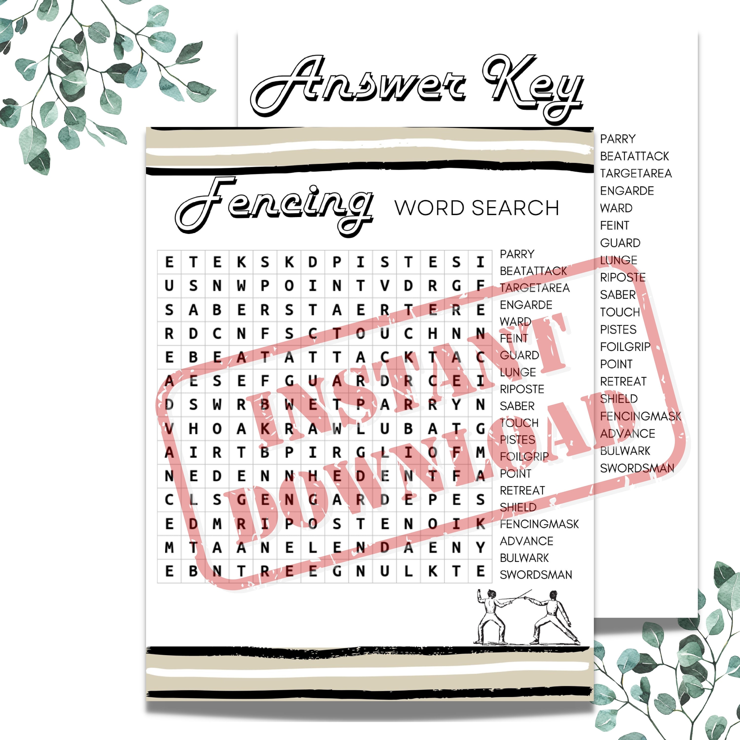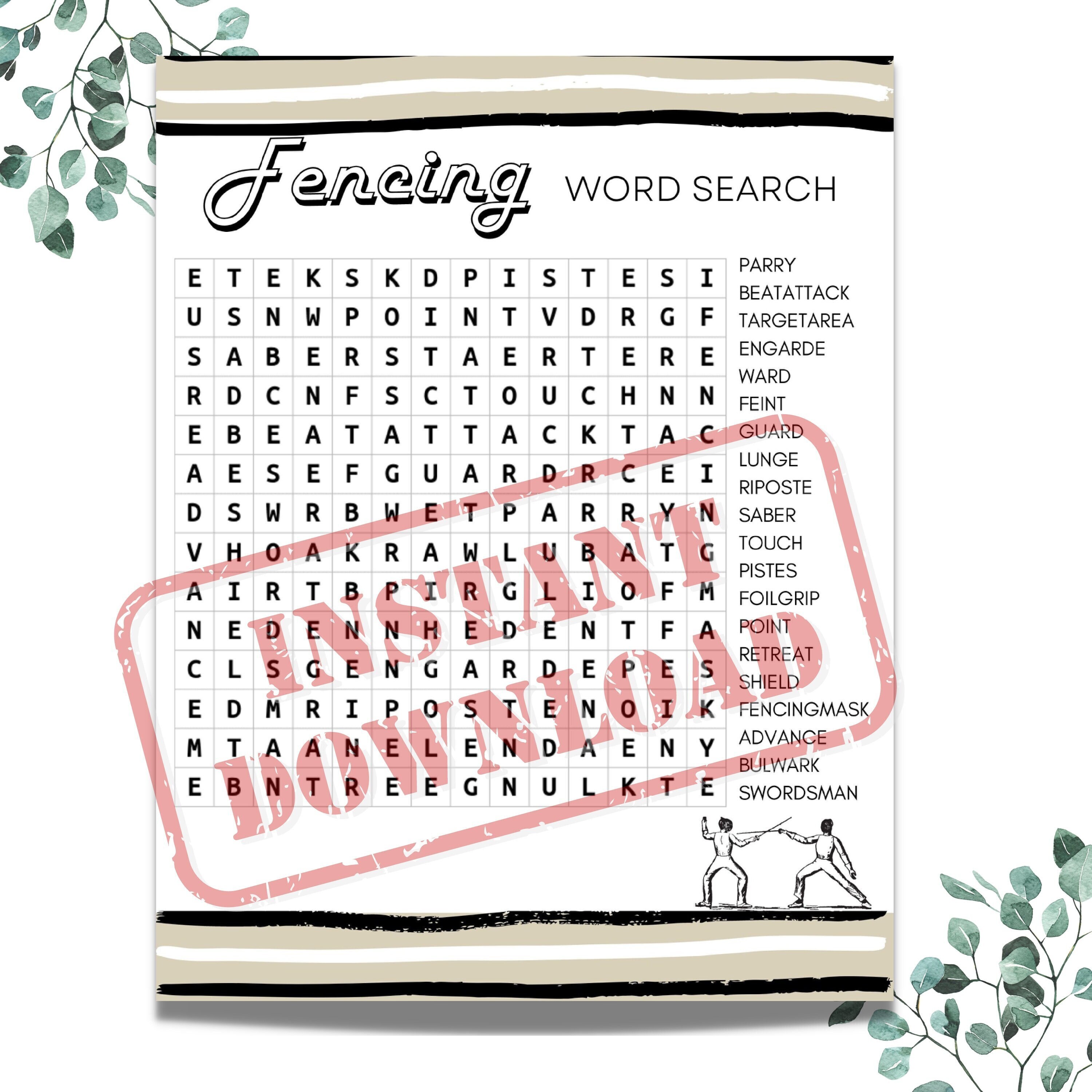 Fencing Word Search Puzzle Game Etsy