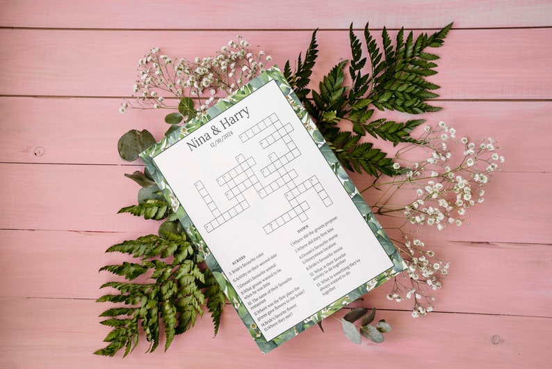 Personalized Wedding Crossword Puzzle Custom Wedding Activity Lawn