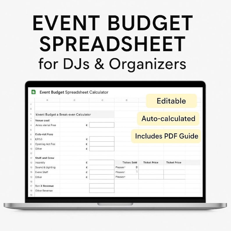 Event Budget Planner Spreadsheet Excel Google Sheets Party DJ