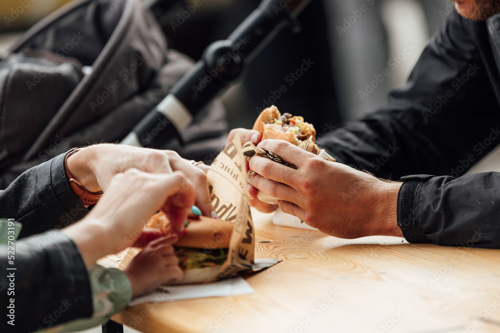 People Eating Burger Festival Food Court Stock Photo 2188874877