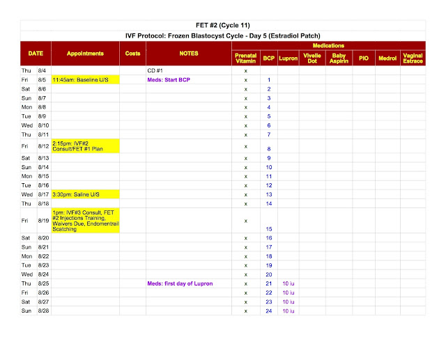 FET 2 (Cycle #11): Baseline Ultrasound FET Calendar