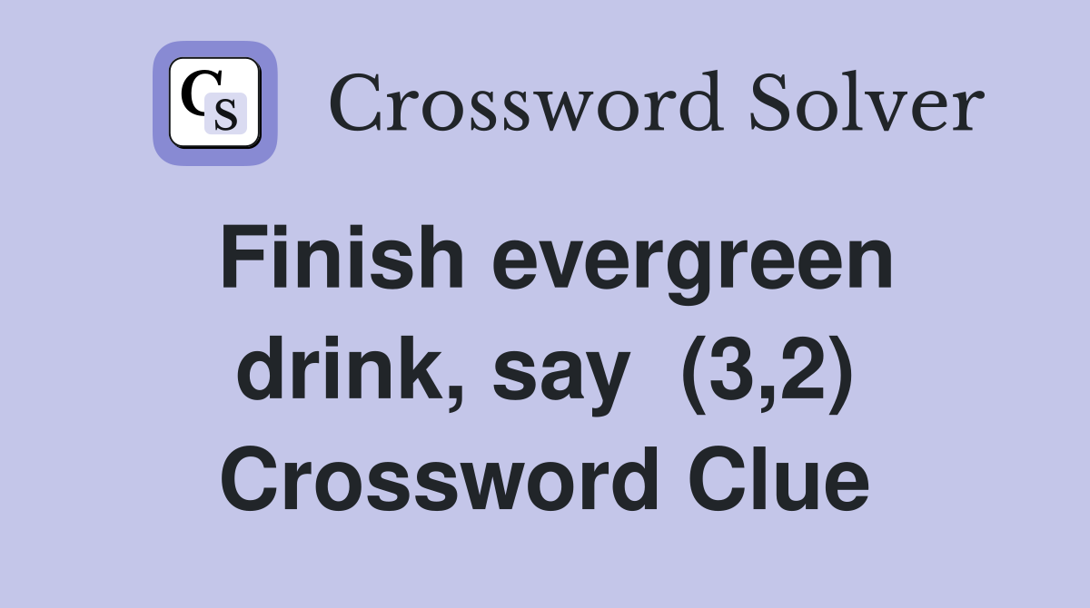 Finish evergreen drink say (3 2) Crossword Clue Answers Crossword