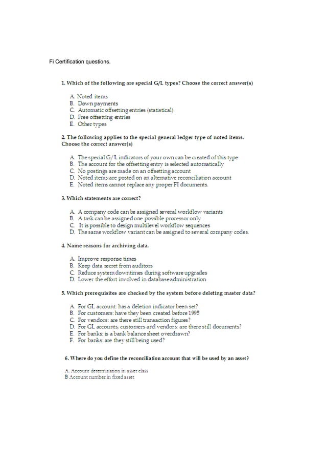 SAP FI Certification Sample Questions and Answers Set 1 Doc Template