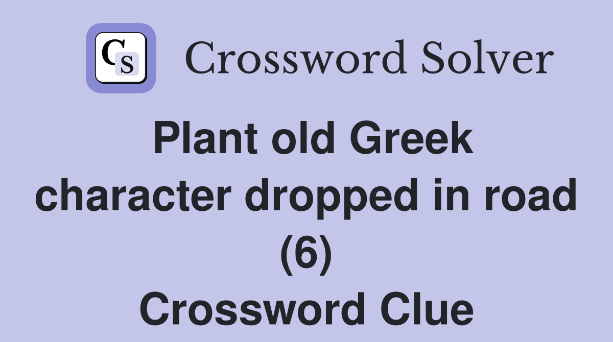 Plant old Greek character dropped in road (6) Crossword Clue Answers
