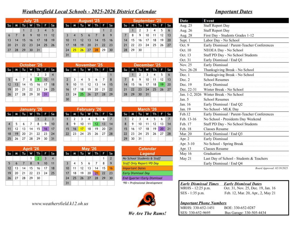 Weathersfield Local Schools Calendar 25 26 Revised PDF EduCounty