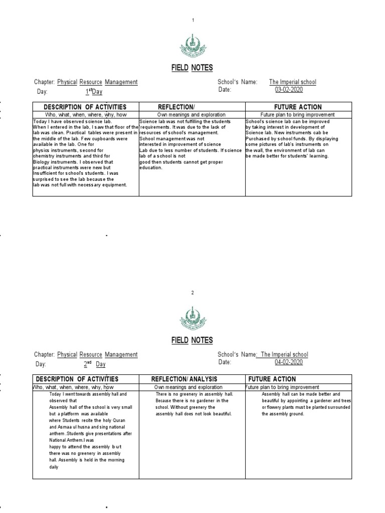 Field Notes: Description of Activities Reflection/ Future Action PDF