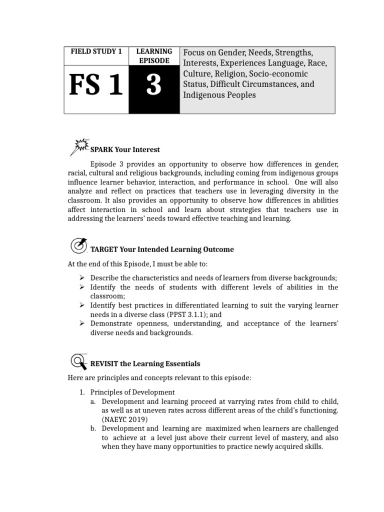 Field Study 1 Ep 3 PDF Learning Differentiated Instruction